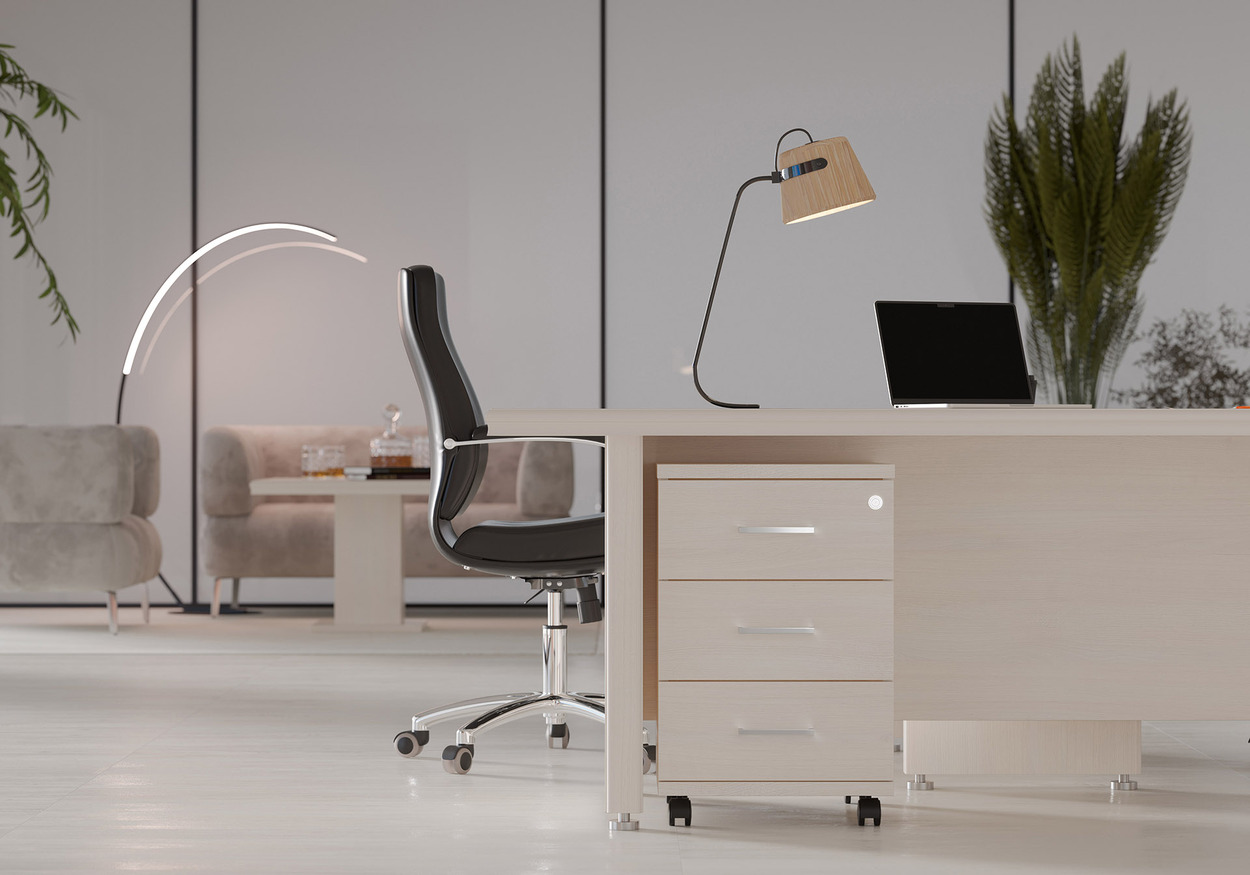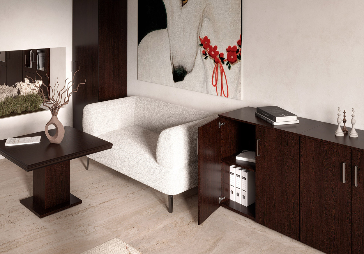 фурнитурой. Кабинет способен вписаться почти в любое офисное пространство, став его центром притяжения.