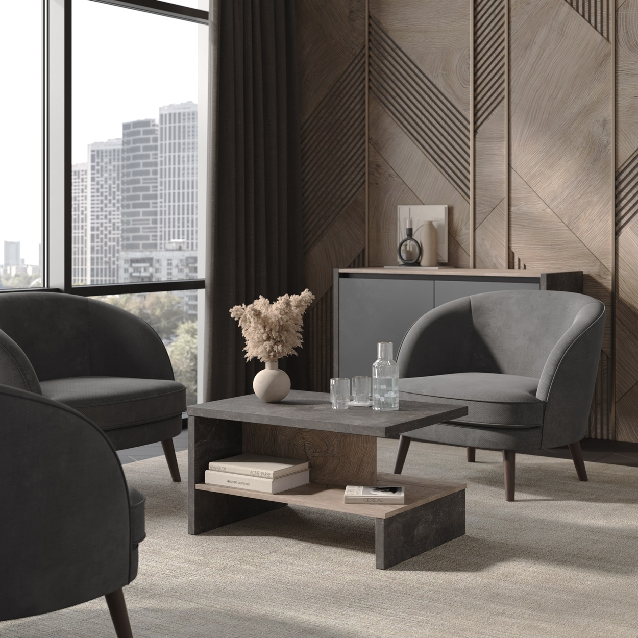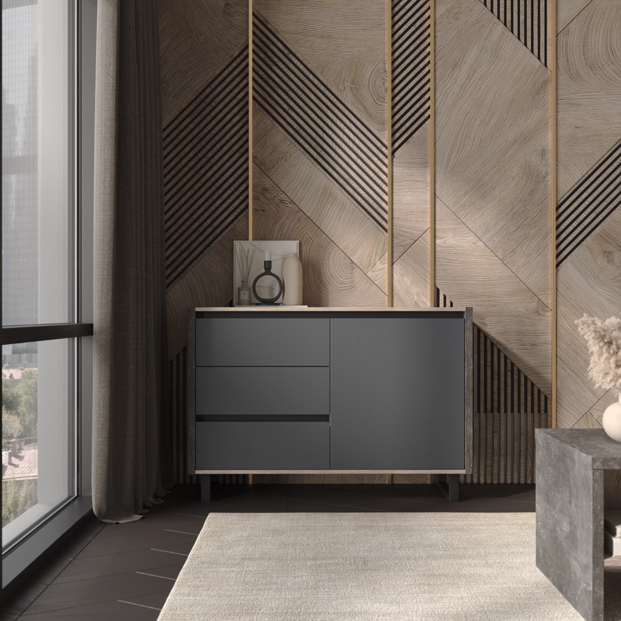 Дуб Эндгрейн-ателье темный-антрацит