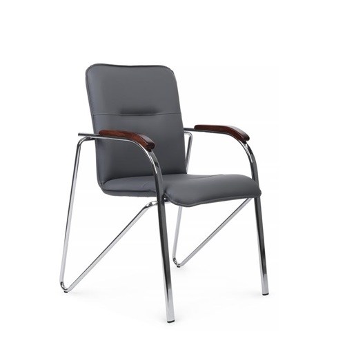 ГлавнаяОфисные стульяОфисный стул Самба хром гальв. с деревянными подлокотниками Эко-кожа/PU-кожа